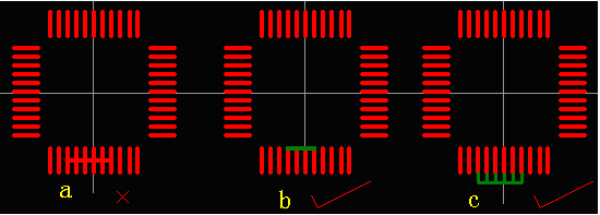 如果畫圖時(shí)按圖b、圖c的方法短接并加上阻焊,焊接出來的效果就不一樣。