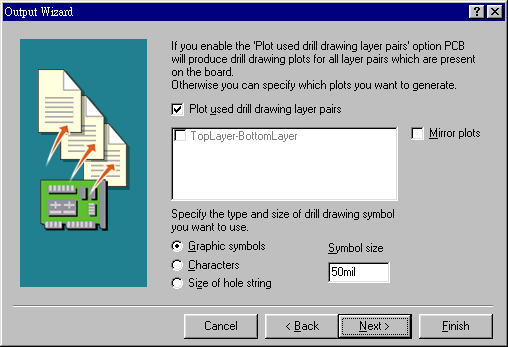 如果要產(chǎn)生鉆孔文件時(shí),是否每一設(shè)計(jì)層均需被建立??jī)?nèi)定值為設(shè)計(jì)為頂層與底層要鉆孔文件,且為50mil大小的圖形。