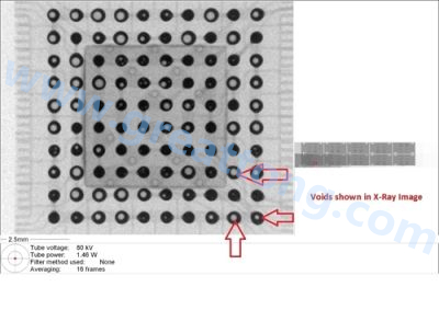 圖3:因孔徑過大,焊料沿孔壁爬溢流出,導(dǎo)致在SOP封裝上產(chǎn)生吸抽作用,并使得周邊設(shè)備焊墊短路。