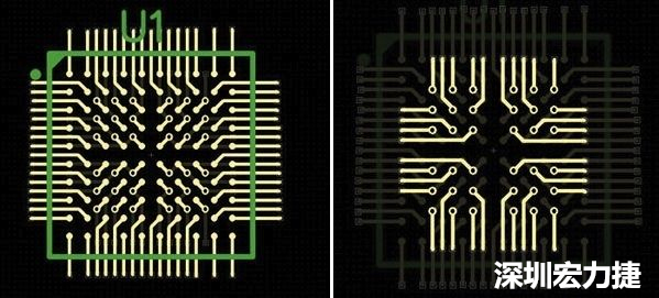 圖4a和4b:從最外層開始向中心為不同的BGA圈布線。