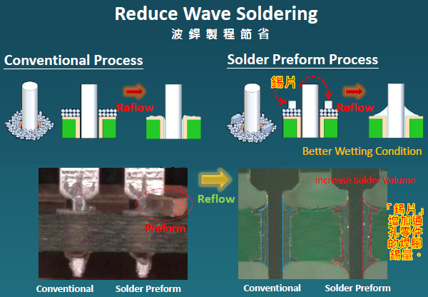 錫片只要放置于印刷錫膏上,回焊高溫熔解后會自動融入沾負的錫膏中