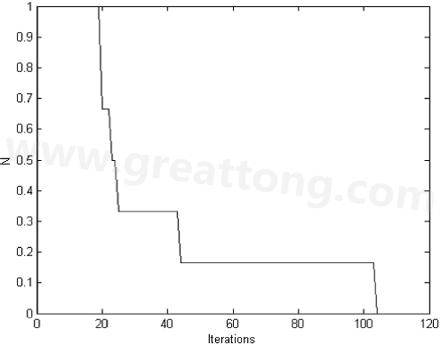 圖8顯示了待定位對像總的數(shù)量和當(dāng)前已經(jīng)定位對象數(shù)量的變化過程。其中N的定義為: